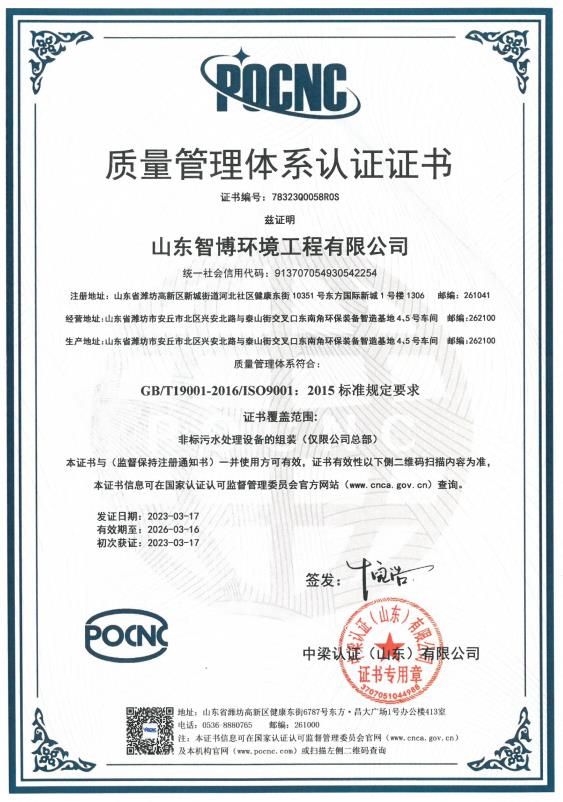 山東智博環境工程有限公司是一家集科技研發、設計、安裝調試、施工承包、工程運營服務為一體的綜合性環保科技公司,主要業務包括污水治理、廢氣治理、軟化水處理等,具備一整套先進的實驗設備和質量管理控制體系。